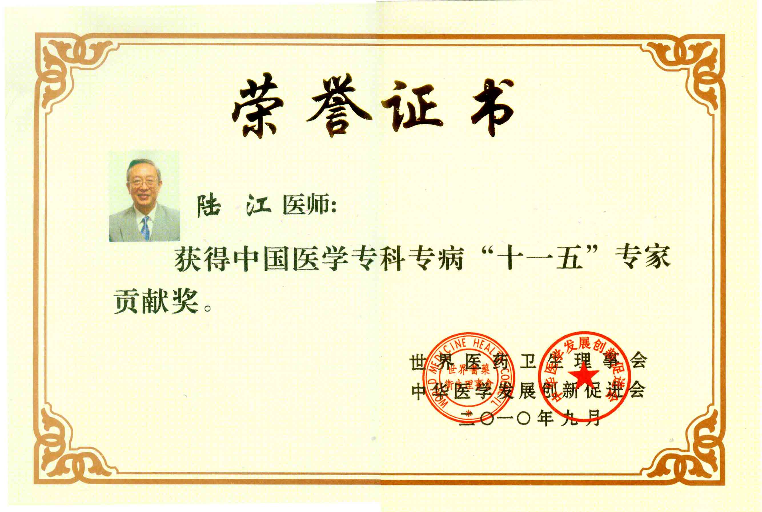 陸江獲得中國醫學專科專病優(yōu)秀專家恃別貢獻獎